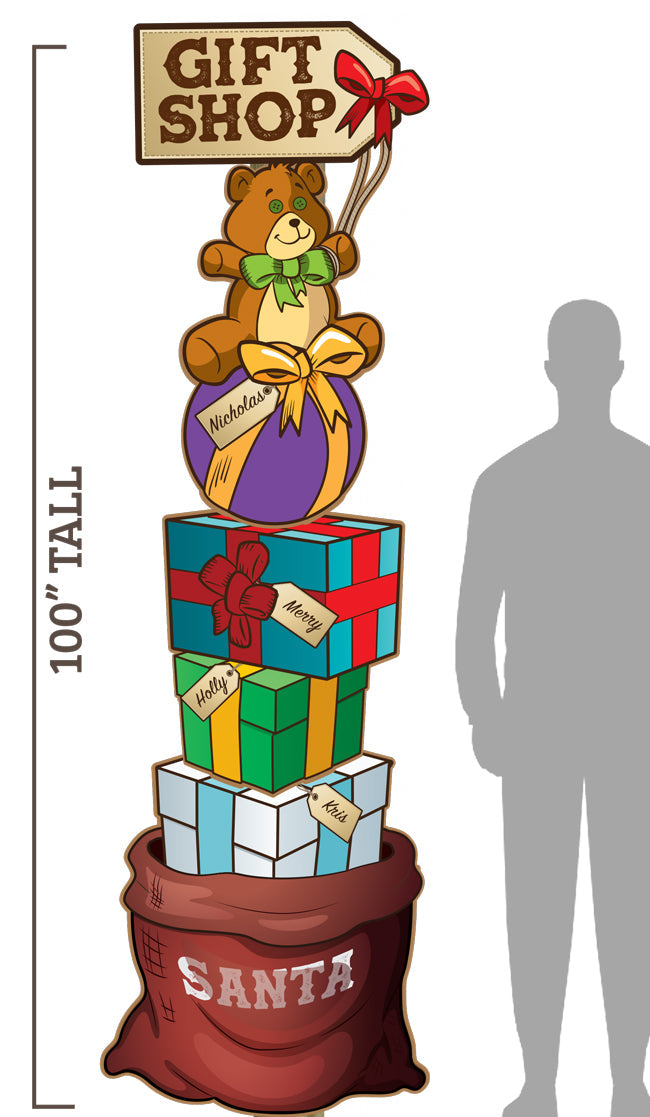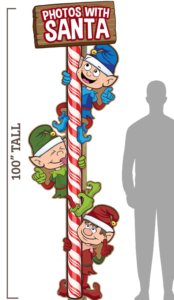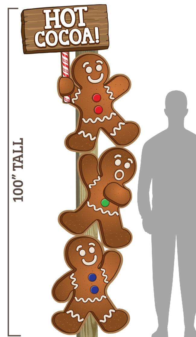 Our sign boards are produced using 1/2" thick outdoor composite material, with gently curved and sanded edges. Sizes vary per design, but they are approximately 8 feet tall, and 20" wide, when installed together. The top 'sign' portion is printed and shaped on aluminum composite, for weight and durability.