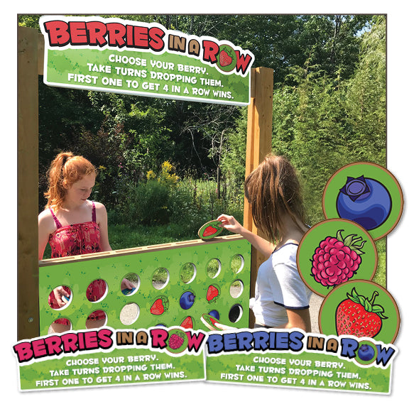 Created for our buyers by request- 'In-a-Row' (Connect 4) is easy to understand and fun for all ages. Our over-sized, themed sets look great and invites people over to play. This game will encourage socialization between groups, and generations. You may choose your own berry combination. Available in many different themes.