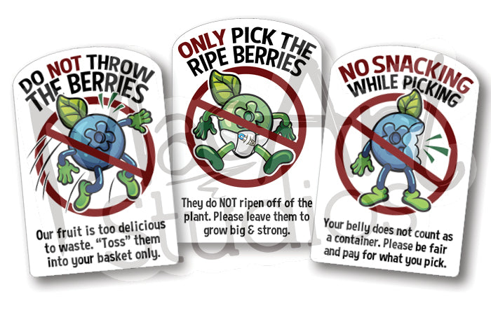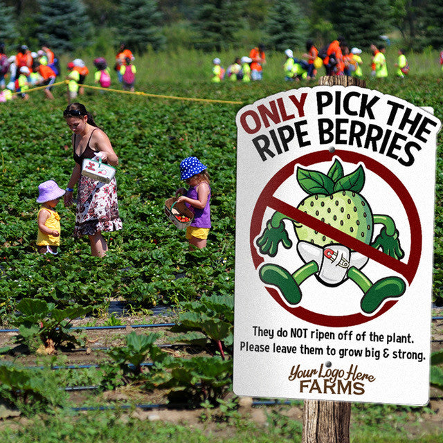 Hobby pickers often don't realize how destructive to the crops they can be. Make sure they notice the rules- and pay attention to proper picking etiquette with these attention-grabbing signs.