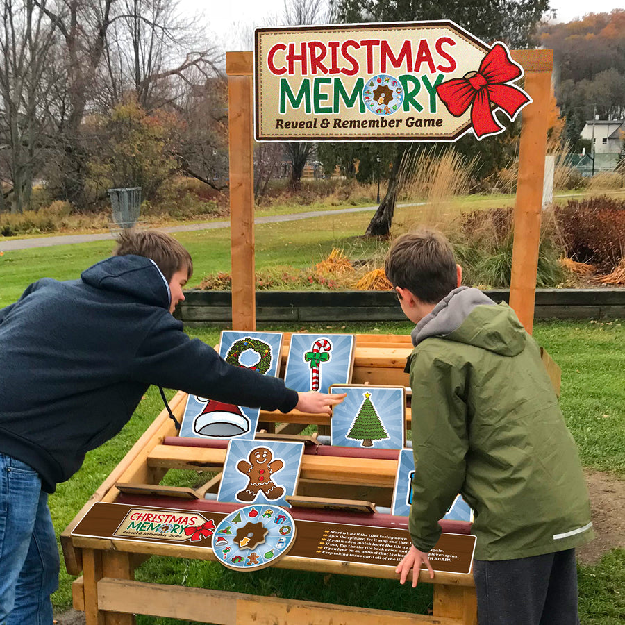 Play alone or with a friend! Based on the classic memory game, this oversized set is designed for cooperative, social play in outdoor spaces. The central spinner allows for randomization in the game play while also having all the tiles locked into the set. Can be enjoyed in a group or on your own!