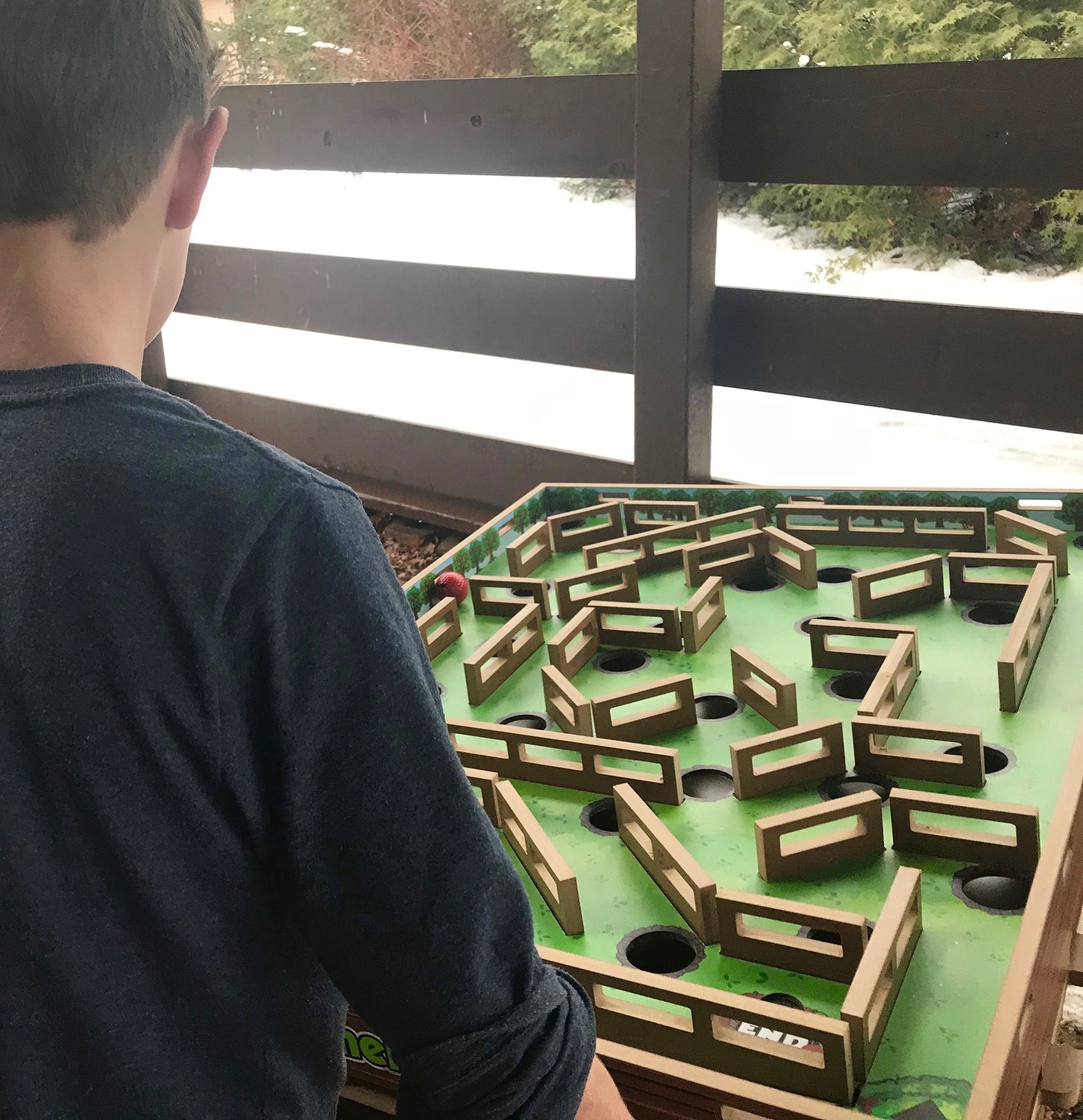 Tilt-A-Maze® maze game is completely self-contained, and will re-set itself between players without electricity or supervision. It is made of durable outdoor composite materials, and will stand up to all weather extremes. This product is very successfully traffic-tested, and guaranteed to stand up to continual, endless play by big kids and adults.