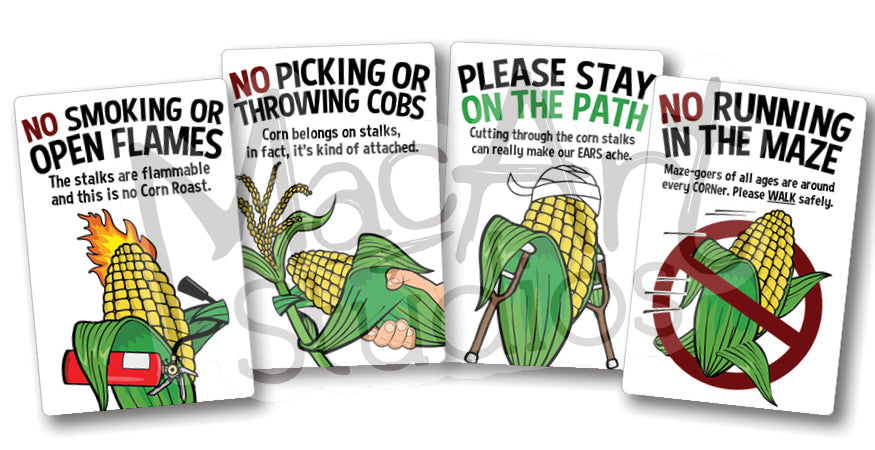 We think your guests will take more notice of the maze rules, if we make them smile a little first. Designed to grab attention, and make sure they read your rules! These signs are produced on 1/8" aluminum composite and laminated against damage. Signs are cut to shape for that animated family fun look.