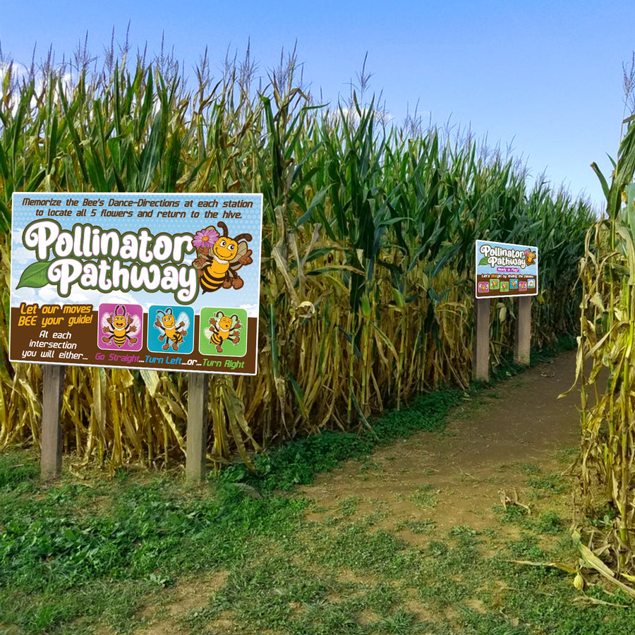 Turn a simple grid maze or trail into a bee-inspired memory challenge for the whole family. Participants learn the 3 dance-directions at the entrance of the path, and then set down the trail to find the flowers- guided by the bee steps