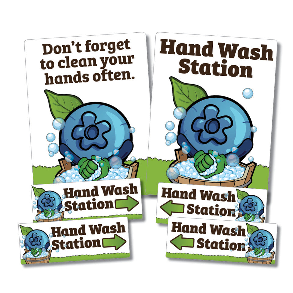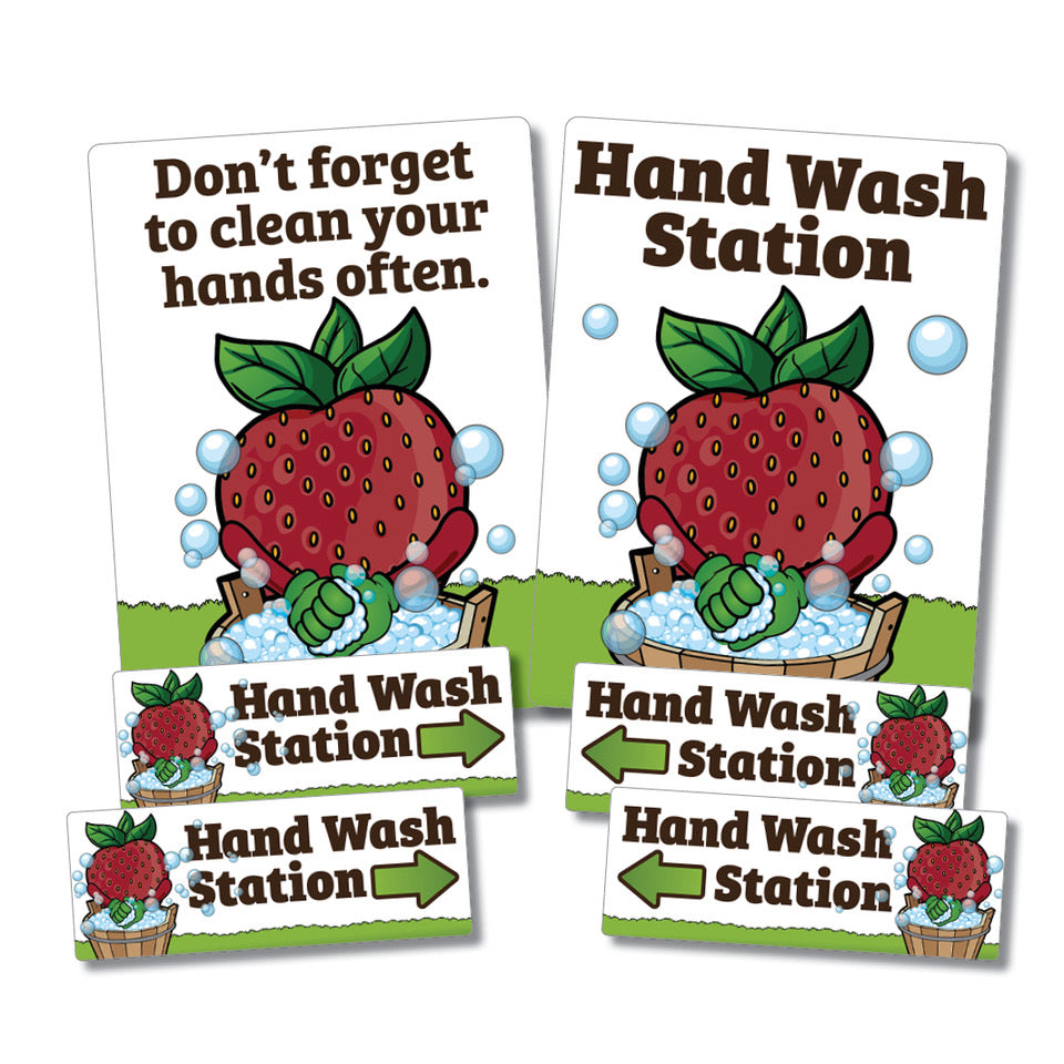 Promote great hand hygiene with constant reminders and access to hand washing stations. Set includes:
