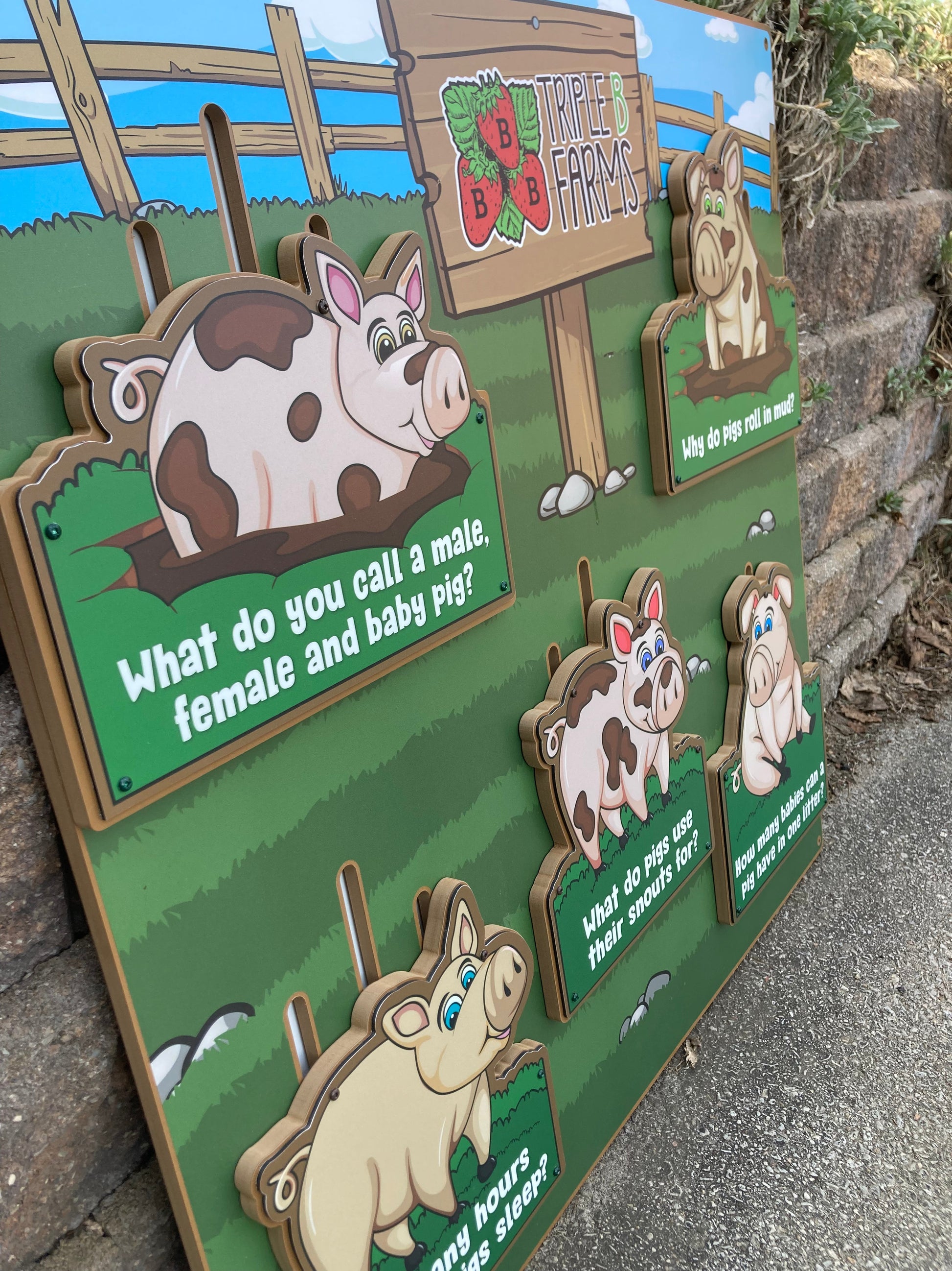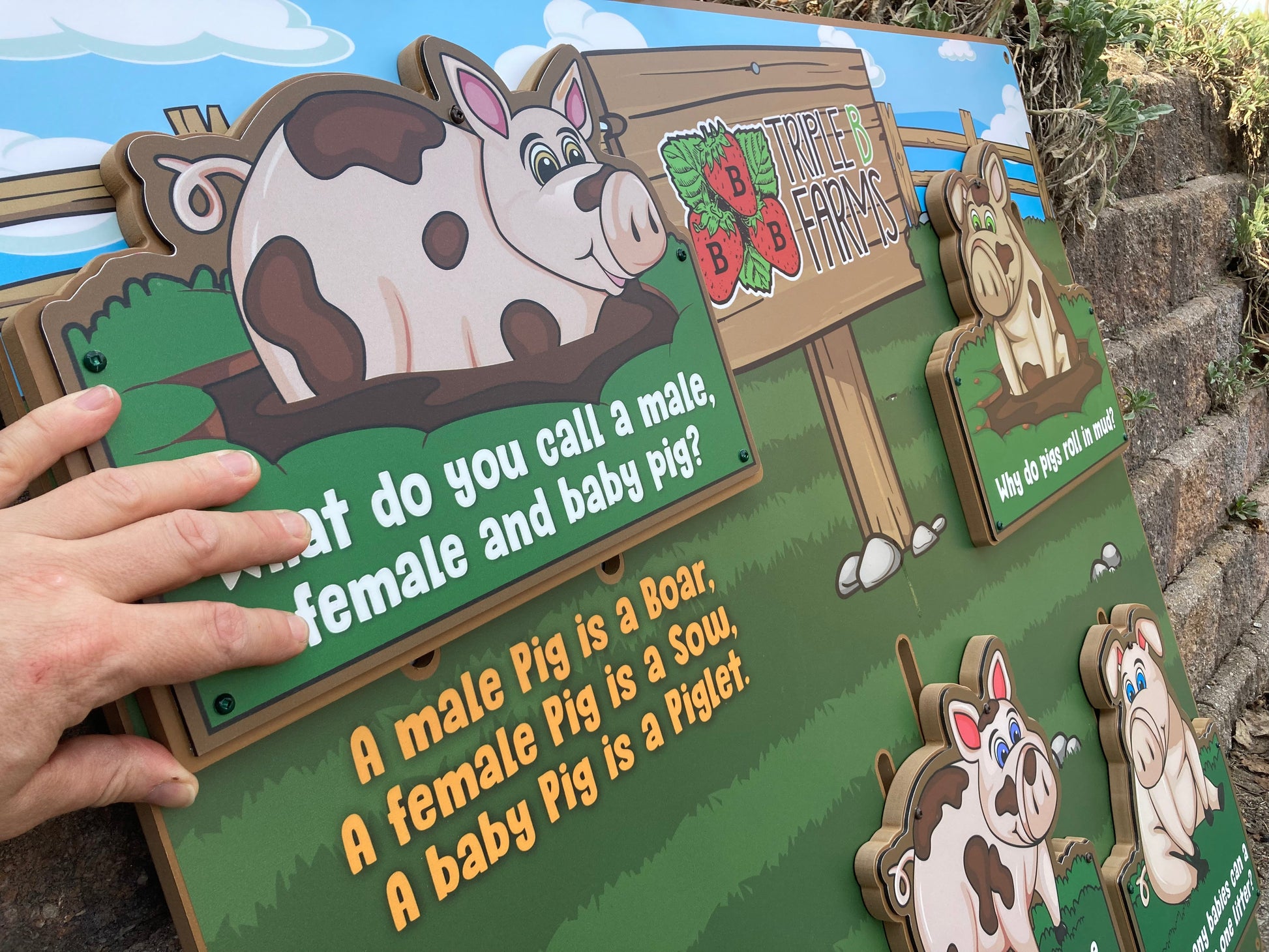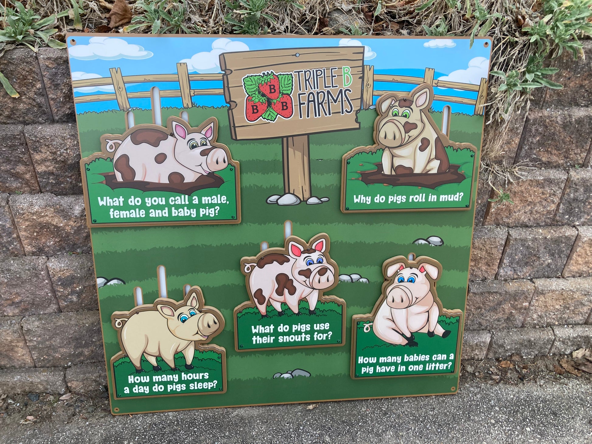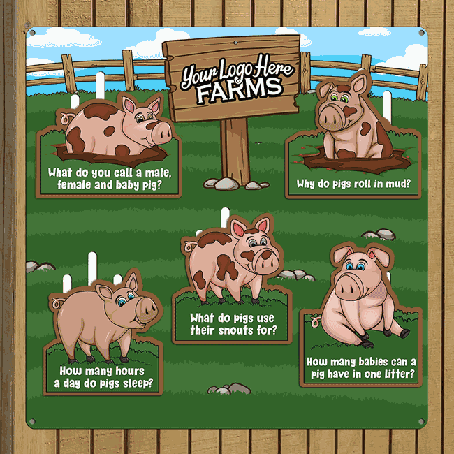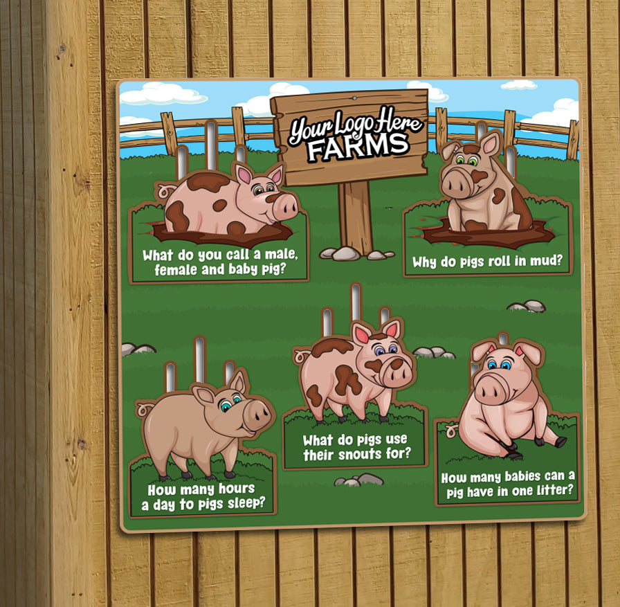 Read, Slide, LEARN! This fun sign includes 5 sliding panels, each with Q&A style facts to 'edutain' your guests, as they explore the farm. Customizing with your logo is included in the cost! BULK OFFER: Save $200 when you order 2 at once.