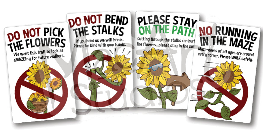 We think your guests will take more notice of the maze rules, if we make them smile a little first. Designed to grab attention, and make sure they read your rules! These signs are produced on 1/8" aluminum composite and laminated against damage. Signs are cut to shape for that animated family fun look.