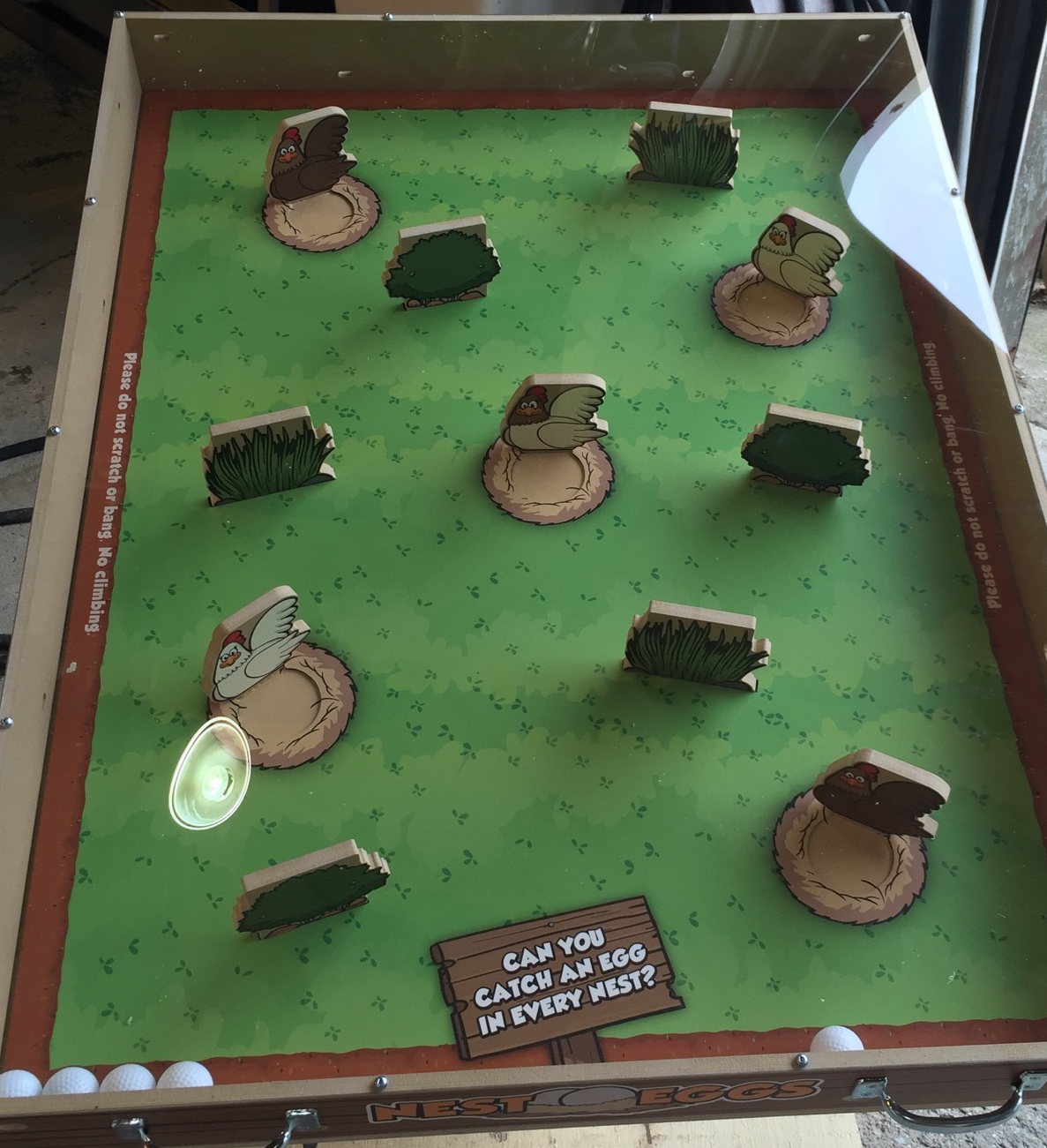 This tilt-a-maze is a multi-ball design. Players are aiming to get a ball in each of the targets, without rolling balls out of targets.