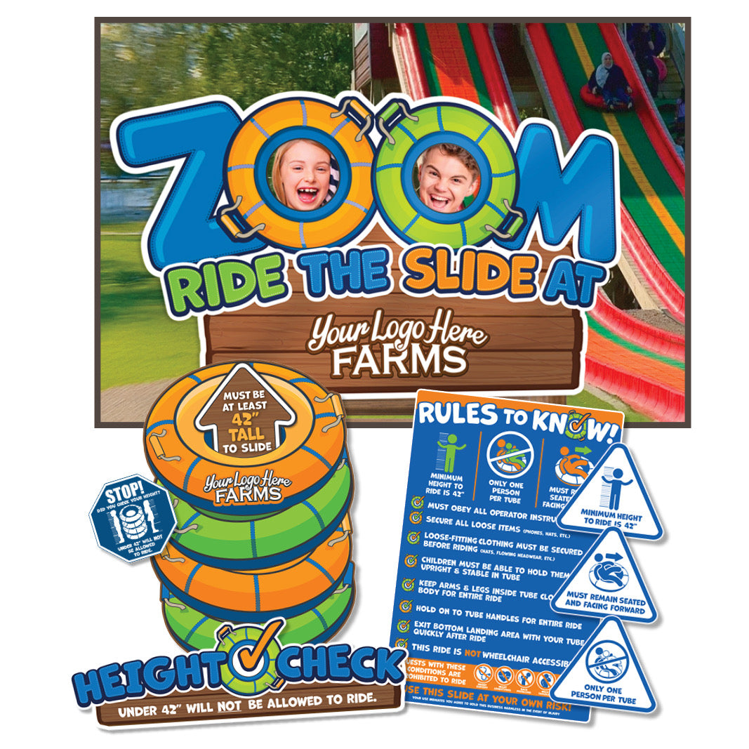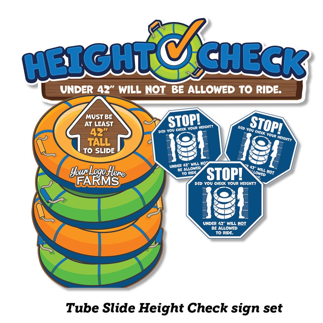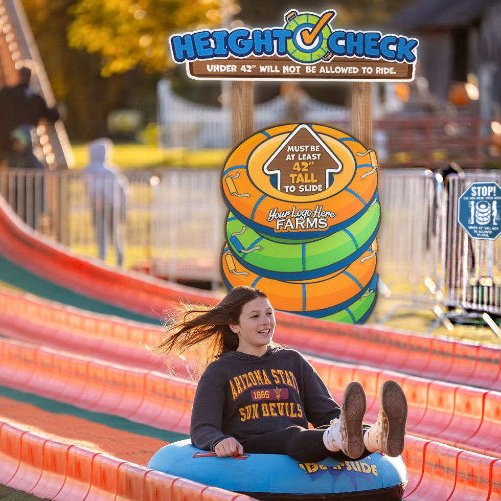 Our Tube-slide products were created to answer a need in the industry. The new giant slides are great fun, and attracting long lines... but some people get to the front of that line even though they are too short to ride. MacArt has created a signage package to help with this pain point, and promote the slide with awesome Photo-Opps and displays.